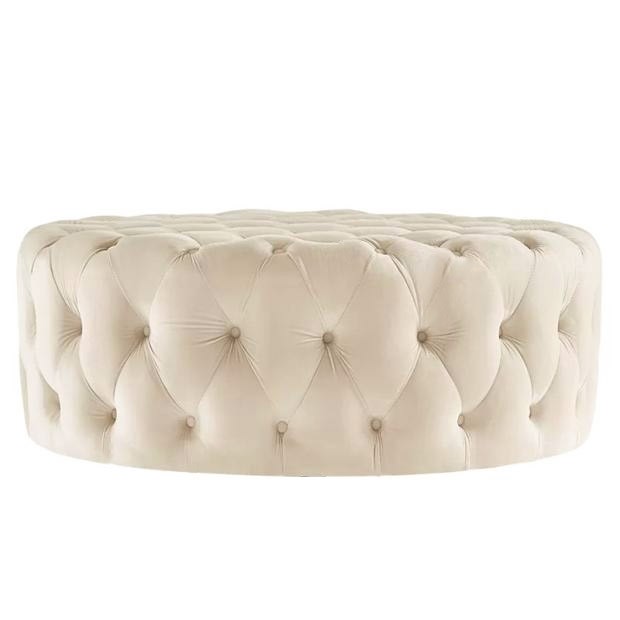 Bring casual seating to your living room or den with this playful ottoman. Boasting the button tufted accents, it allows for breathing space while you relax and limits the amount of heat that is generated. Additionally upholstery provides softness against the skin for comfort as well as lasting durability, while the foam cushion provides added comfy and support. Designed for versatility, it can be used as an ottoman in the bedroom, a pouf in the den, or a coffee table in the office, living room, or dining room. The spacious top is ideal for folding laundry, setting down a tray of drinks, or resting your feet. No matter how you choose to display this piece, it is sure to draw attention!