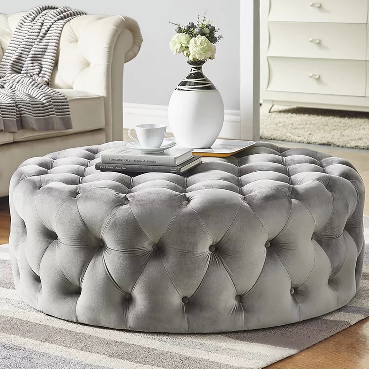 Bring casual seating to your living room or den with this playful ottoman. Boasting the button tufted accents, it allows for breathing space while you relax and limits the amount of heat that is generated. Additionally upholstery provides softness against the skin for comfort as well as lasting durability, while the foam cushion provides added comfy and support. Designed for versatility, it can be used as an ottoman in the bedroom, a pouf in the den, or a coffee table in the office, living room, or dining room. The spacious top is ideal for folding laundry, setting down a tray of drinks, or resting your feet. No matter how you choose to display this piece, it is sure to draw attention!