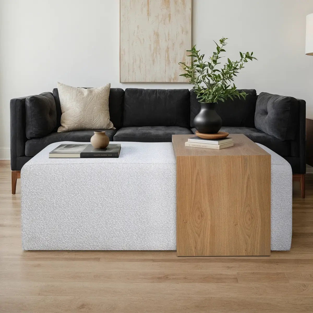 The Modern Rectangular Ottoman with Wood Accent is a sophisticated blend of contemporary design and timeless craftsmanship. Featuring a clean rectangular silhouette, this ottoman is both a functional piece of furniture and a stylish accent for any living space.