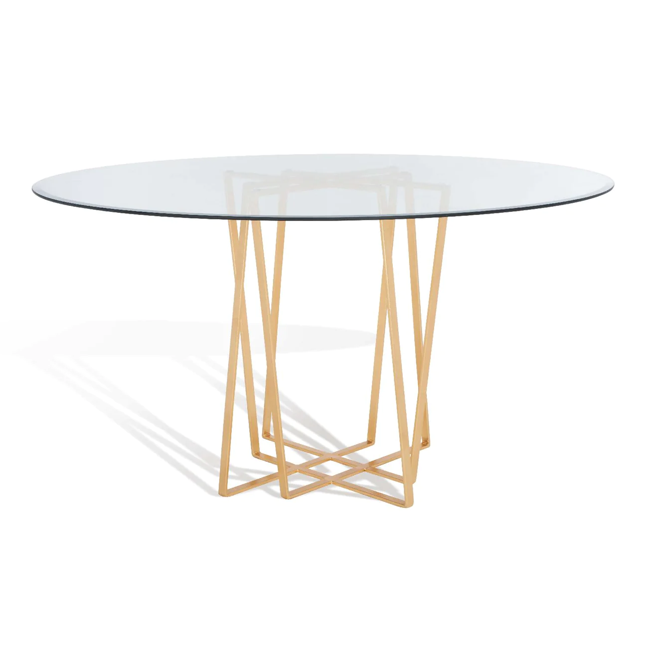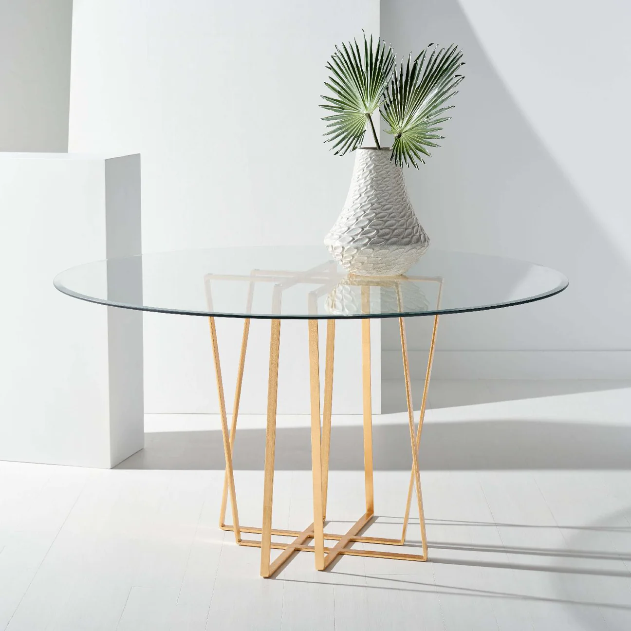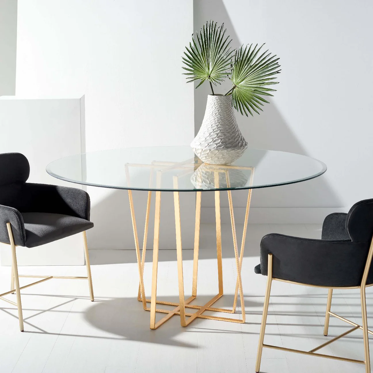 This modern round 10mm Glass Top Dining Table is the perfect addition to any contemporary dining area. Its elegant, round tempered glass top seats up to 6 people, while the sturdy crossed legs provide stability and style.