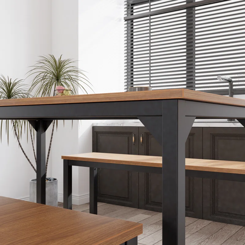 • The desktop surface is spacious enough to easily accommodate four people dining. Two benches can be put beneath the table for easy storage, which makes extra space to use.