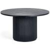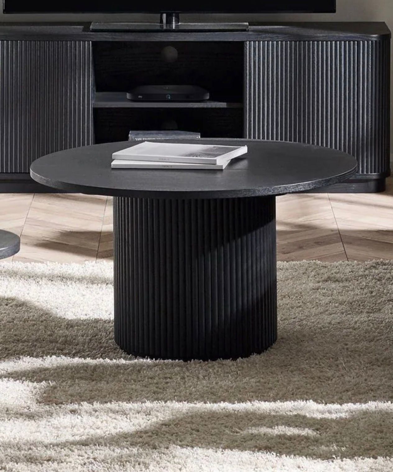 Designed with a solid steel cylindrical frame and a refined wooden round top, this coffee table is both functional and luxurious. Its sleek black finish effortlessly complements contemporary, industrial, and minimalist interiors, making it the perfect addition to your lounge, office, or reception area.
