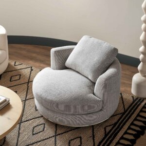 Upholstered in soft, high-quality fabric, the Theo Swivel Chair delivers a comfortable and inviting seating experience. Its plush cushioning and supportive backrest provide relaxation whether you’re lounging, reading, or entertaining. The swivel feature allows for easy movement, enhancing convenience without compromising on design.