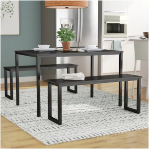 This dining set is both versatile and functional. The clean lines and modern design make it a great fit for various décor styles, while the benches provide ample seating for meals or gatherings.