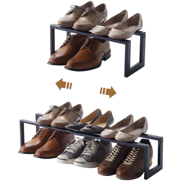 Yamazaki Home Adjustable Shoe Rack, Small, Steel, Holds 4 to 8 shoes, Expandable, Stackable